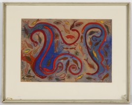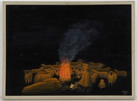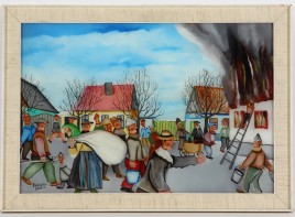 geb. Kovacica 1930, ‚Feuer‘, Hinterglasmalerei, 34,5 x 50 cm – Inv.Nr. J-1020/122 –