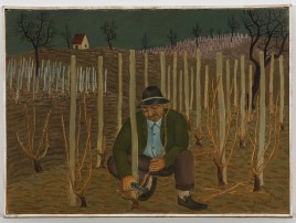 Grohote 1914 – 1997, ‚Mostpresser‘, Öl/Spanplatte, 54,5 x 80 cm, Kratzspuren – Inv.Nr. J-1020/015 –