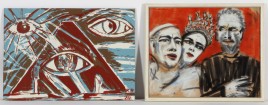 Schwäbisch Gmünd 1962 – tätig in Karlsruhe, ‚Zweideuter‘, je verso betitelt, zweiteilig, Tempera/Lwd./Holz, je 33 x 33 x 8 cm (405,406)