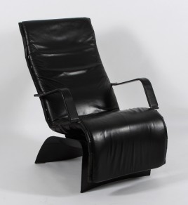 Schaukelstuhl, Entwurf 1971, Stahlrohr, verchromt, schwarzer Cordbezug, H = 104 cm, Gebrauchsspuren