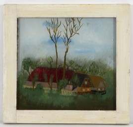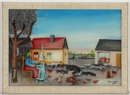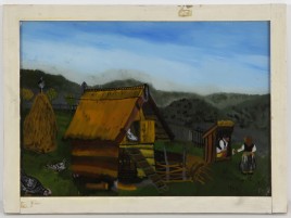 geb. Kovacica 1930, ‚Bauernhof‘, Hinterglasmalerei, 38,5 x 56 cm – Inv.Nr. J-1020/121 –