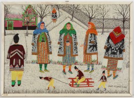 Kovacica 1925 – 2001 daselbst, ‚Die Braut wird geschmückt‘, Öl/Lwd., 50 x 70 cm, löchrig – Inv.Nr. J-1020/019 –