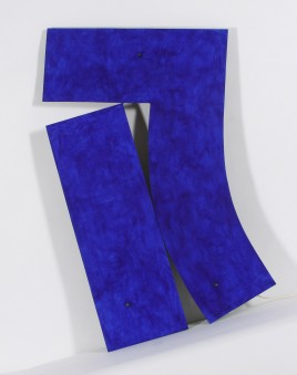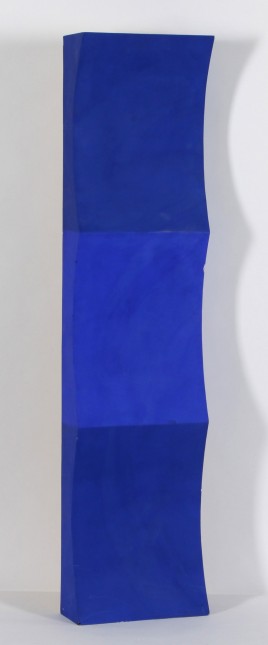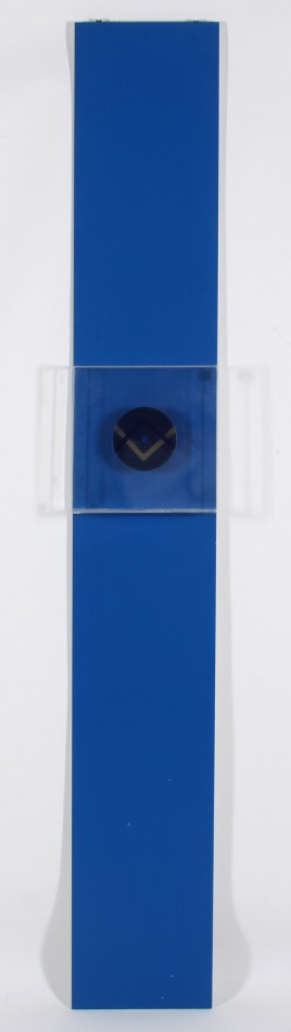 Berlin 1925 – 2001 Erbach, ‚L’heure bleu‘, zwei bewegliche Kunststoffplatten als kinetische Wandplastik, in Plexiglaskasten, 6/100, 134,5 x 34 x 9 cm, Kasten geklebt, dazu Wandaufhängung, blau lackiert, verso betitelt, 236 x 34 cm, Farbfehlstellen (241)
