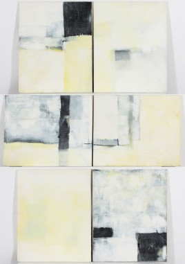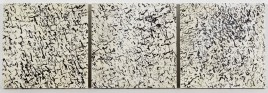 je verso sig., dat. 1991, Kirch-Göns 1950 – tätig in Kronberg, ‚o.T.‘, Triptychon, Acryl/Nessel, aufgezogen, je 100 x 40 cm, Farbfehlstellen, o.R.