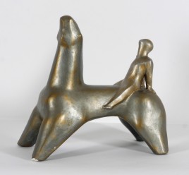 Landau 1964 – tätig in Hildesheim, ‚Mutterwacht‘, dreiteilig, Ton und Handschuhe mit Latexbeschichtung, H = 30 cm bzw. 23 cm (95)