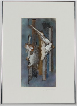 r.u.handsig., dat. 14.12.(19)91, Bad Nauheim 1936 – tätig daselbst, ‚o.T.‘, Collage und Gouache, 1/99, 70 x 50 cm (1045)