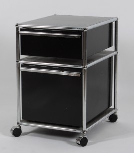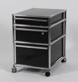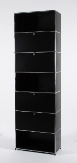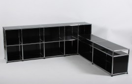 USM Haller, mit schwarz lackierten Metalleinsätzen, in drei Höhen, H1 = 75 cm, H2 = 50 cm, Außenlänge = 207 cm bzw. 187 cm, Kratzspuren, dazu lose Teile