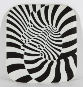Heidelberg 1946 – tätig in Mannheim, ‚Schwarz-Weiß‘, Acrylglasplatte, lackiert, 40 x 40 cm, Farbfehlstellen (305)