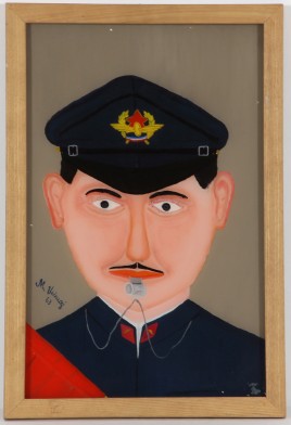 ‚Selbstportrait‘, Hinterglasmalerei, 41 x 27 cm, Farbfehlstellen – Inv.Nr. J-1020/115 –