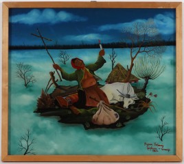 Oparic 1906 – 1994 daselbst, ‚Fähre auf der Morova‘, Öl/Lwd., 53 x 70 cm, Farbfehlstellen – Inv.Nr. J-1020/011 –