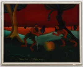 geb. Gola 1935, ‚Adam und Eva‘, Hinterglasmalerei, 32 x 41 cm – Inv.Nr. J-1020/129 –