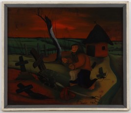 geb. Gola 1935, ‚Auf dem Friedhof‘, Hinterglasmalerei, 38,5 x 45 cm, Farbablösungen, Farbfehlstellen – Inv.Nr. J-1020/128 –
