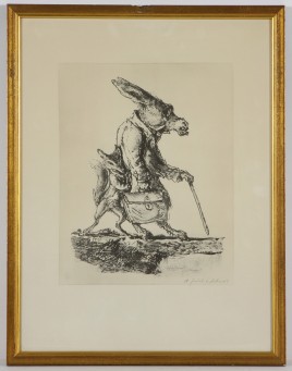 Arnstadt 1893 – 1980 Schretstaken, ‚Ein lästiger Esel‘, ‚Grippaler Infekt‘, ‚Reineke Fuchs: In der Gunst des Königs‘, drei Lithographien, 32,5 x 27 cm, 26 x 24,5 bis 34 x 28,5 cm (Blatt), gebräunt, Lichtschaden