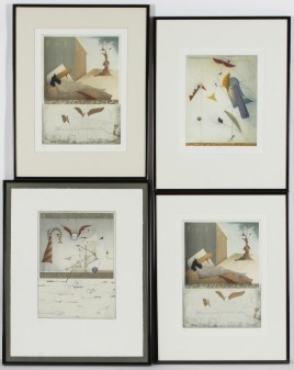Graslitz 1945 – tätig in Prien, ‚Future‘, je betitelt, vier Farbaquatintaradierungen, je mit Auflage, je ca. 41 x 30 cm (331,641,817,958)