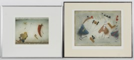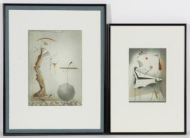 Graslitz 1945 – tätig in Prien, ‚Swing Time‘ und ‚Nachts ein heimlich Gruglen‘, je betitelt, zwei Farbaquatintaradierungen, 81/150 und 58/150, 42 x 30 cm und 30 x 21 cm (644,651)