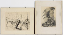 Mainz 1907 – 1981 daselbst, ‚Kopfweiden‘, Tuschfederzeichnung, 27,5 x 27,5 cm; ‚Armeestiefel‘, Bleistiftzeichnung, 30 x 22 cm (PP-A.), Nurglasrahmen bestoßen, stockfleckig, gebräunt (2)