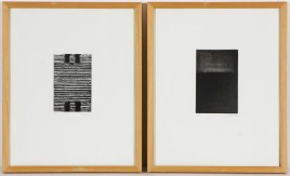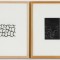 je l.u. auf PP sig., je r.u. auf PP dat. 2000, Chalon-sur-Saône 1952 – tätig in Frankfurt/M., ‚o.T.‘, Acryl/Papier, je 21 x 21 cm (2) (2×140)
