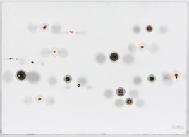 geb. 1950, tätig in Frankfurt/M., ‚o.T.‘, Tempera über Offset, aufgezogen, 46 x 34 cm