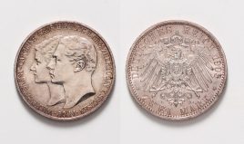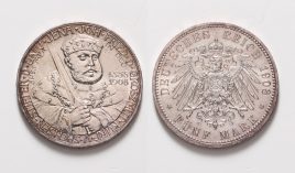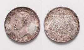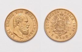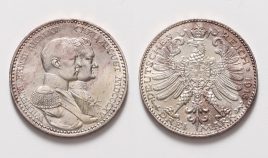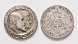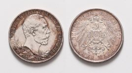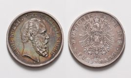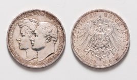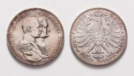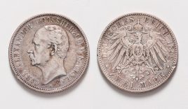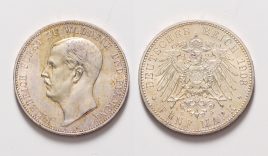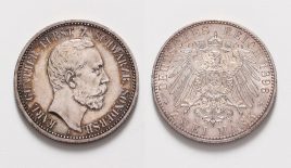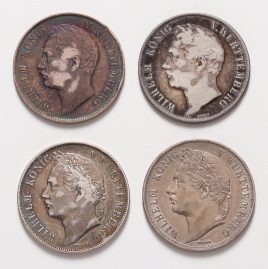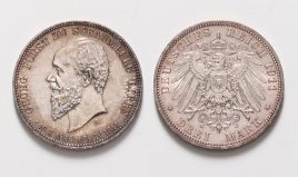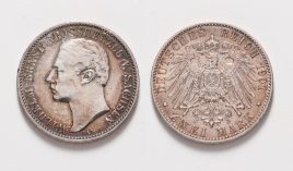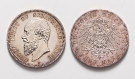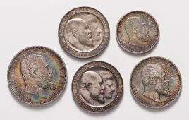 Wilhelm II. König von Württemberg: 2 Mark, 1912; 3 Mark, 1910; 2 x 3 Mark, Silberhochzeit mit Charlotte von Schaumburg-Lippe, 1911; 5 Mark, 1908 /620,621,622,623,2938