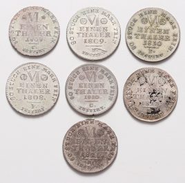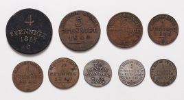 1/4 Kreuzer, 1854; 1/2 Kreuzer, 1836, 1842, 1862, 1866; 1 Kreuzer, 1835, 1856, 1863, 1870; 3 Kreuzer, 1842, 1845; 6 Kreuzer, 1811, 1827, 1856, 1840 /3130,3131,4440,4441,4442,4443,4444, 4445,4448,4449,4842,4843,5522,5761,6040