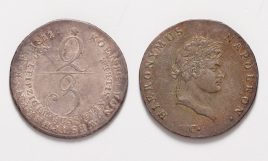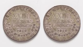 Fürstentum Waldeck und Pyrmont: 1 Pfennig, 1809, 1817(2), 1825, 1842, 1845, 1855, 1867; 3 Pfennige, 1809, 1819, 1824, 1842, 1845, 1855, 1867; 4 Pfennige, 1809; 1/2 Groschen, 1809; 1 Silbergroschen, 1842, 1855, 1867(2); 1/2 Mariengroschen, 1825; 1 Mariengroschen, 1820; 2 Mariengroschen, 1823; Königreich Westphalen: 1 Pfennig, 1808; 1 Centimes, 1809; 2 Centimes, 1810; 3 Centimes, 1812(2); 5 Centimes, 1809, 1812(2); 10 Centimes, 1808(2); 20 Centimes, 1808(2), 1810, 1812(2); 1/12 Taler, 1809; 1/2 Franken, 1808 /3126,3127,4436,4437,4438,4439,4881, 5114,5115,5116,5117,5118,5120,5399, 5537,5538,5539,5541,5570,5581,5582, 5583,5586,5587,5588,5589,5590,5591, 5592,5594,5595,5596,5597,5598,5599, 5645,5723,5974,5975,6017,6018 (42)