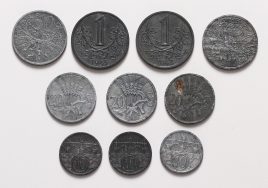 Protektorat Böhmen und Mähren, 10 Heller, 1940, 1941, 1942; 20 Heller, 1940, 1941, 1943; 50 Heller, 1940, 1941; 1 Krone, 1942, 1943 /922,923,924,925,926,927,928, 929,930,931