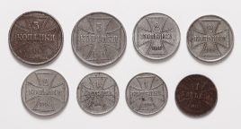 1 Fennig, 1918; 5 Fennigow, 1917(2), 1918; 10 Fennigow, 1917(2); 20 Fennigow, 1917(2); 7 Münzen, Generalgouvernement Polen: 1 Grosz, 1939; 5 Groszy, 1939; 10 Groszy, 1923(2); 20 Groszy, 1923(2); 50 Groszy, 1938 /906,907,908,909,910,911,918,919, 932,933,934,935,936,937,4130