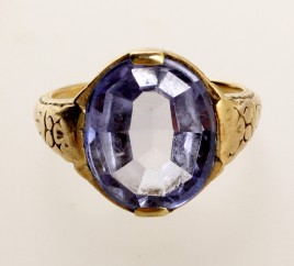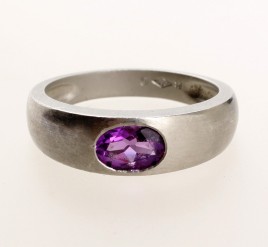 besetzt mit einem oval-facettierten Amethyst von ca. 1 ct., RW 56, ca. 7,9 g, Gebrauchssspuren