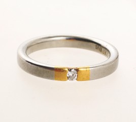 besetzt mit einem Brillant von ca. 0,06 ct., RW ca. 55, ca. 6,6 g, Gebrauchsspuren