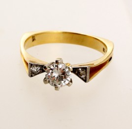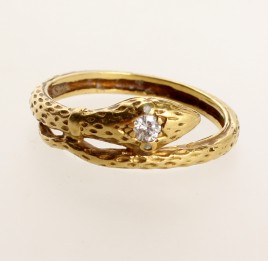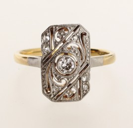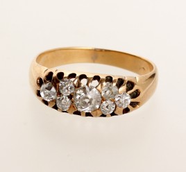 besetzt mit einem Altschliff-Brillant von ca. 0,20 ct. und sechs Altschliff-Diamanten von zus. ca. 0,30 ct., RW 55, ca. 3,2 g