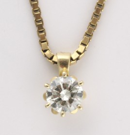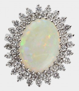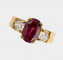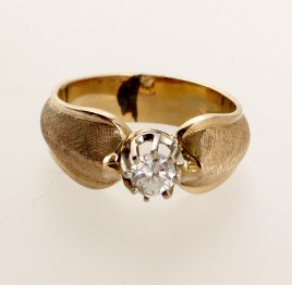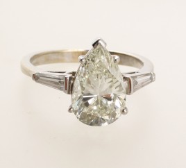 besetzt mit einem Brillant von ca. 1,66 ct. im hohen Farb- und mittleren Reinheitsgrad, RW ca. 50, ca. 4,1 g, Ringschiene restauriert – Zertifikat Schroeder Joailliers 04/2013 liegt vor – – Abb. S. 7 –