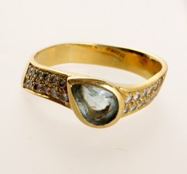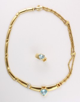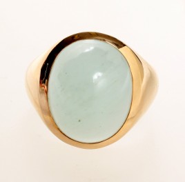 585 GG und WG, besetzt mit einem oval-facettierten Aquamarin von ca. 9 cts., ca. 3,4 g – Abb. S. 5 –