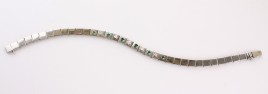 Meistermarke ES, Stabdekor, zwischengefasst zehn runde Elemente, besetzt mit je einem Brillant von zus. ca. 0,05 ct., L = 19,5 cm, ca. 10,6 g, Gebrauchsspuren
