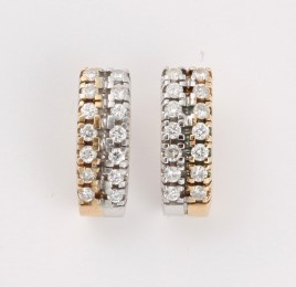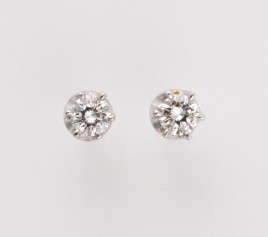 besetzt mit je einem Brillant von zus. ca. 0,14 ct. im mittleren Farb- und oberen Reinheitsgrad, ca. 0,9 g, Gebrauchsspuren