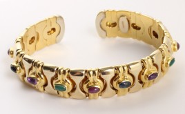 besetzt mit neun Amethysten im Tafelschliff von zus. ca. 8 cts. und 60 Diamanten im 8/8-Schliff von zus. ca. 0,30 ct., L = 18,5 cm, ca. 12,5 g, Fassung leicht verbogen – Abb. auf dem Umschlag –