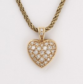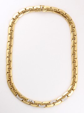 Meistermarke IB, besetzt mit einem Altschliff-Diamant von ca. 0,60 ct. und 31 Altschliff-Diamanten von zus. ca. 1,20 ct., L = 17 cm, ca. 13,1 g, Druckstellen, Diamanten mit Naturals – Abb. S. 4 –