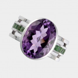 einem oval-facettierten Amethyst von ca. 9 cts., RW 55, ca. 8,8 g – Zertifikat Juwelier Christ liegt vor –