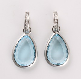 besetzt mit einem rund-facettierten hellblauen Topas (beh.) von ca. 3,33 cts., flankiert von acht Brillanten von zus. ca. 0,06 ct., RW 56, ca. 3,4 g
