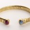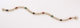teils ornamentiert, alternierend besetzt mit drei hellroséfarbenen Korallen, D = ca. 10,6 mm, und vier Amethyst-Cabochons von zus. ca. 20 cts., L = 17 cm, ca. 28,5 g, Gebrauchsspuren