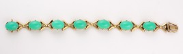 zwischengefasst vier Smaragd-Cabochons von zus. ca. 1,60 ct., L = 20 cm, ca. 11,4 g, Smaragde berieben, einer bestoßen