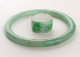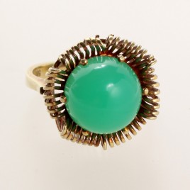 besetzt mit einem Smaragd-Cabochon von ca. 0,80 ct. und zwei Brillanten von zus. ca. 0,04 ct., RW ca. 57, ca. 6,1 g, Gebrauchsspuren
