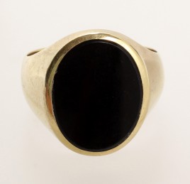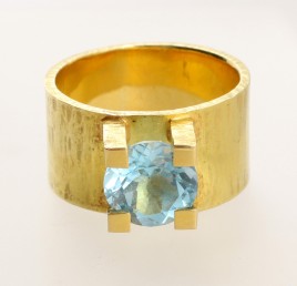 besetzt mit einem oval-facettierten Topas (beh.) von ca. 0,80 ct., RW 56, ca. 7,9 g, Gebrauchsspuren