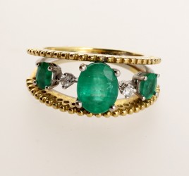besetzt mit einem oval-facettierten Smaragd von ca. 0,30 ct., RW ca. 56, ca. 4,9 g, Smaragd mit Oberflächenmerkmalen