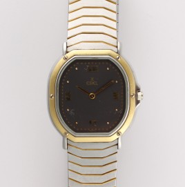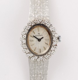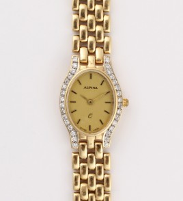 teils mattiert, Schauseite diagonal besetzt mit zehn Brillanten von zus. ca. 0,20 ct., ca. 10,4 g, Gebrauchsspuren