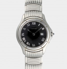 Schauseiten besetzt mit je drei Brillanten von zus. ca. 0,06 ct. und je acht Saphir-Carrées von zus. ca. 0,30 ct., ca. 2,6 g, Gebrauchsspuren