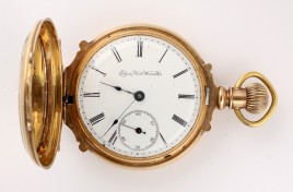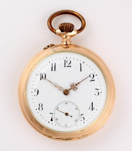 besetzt mit 11 Altschliff-Brillanten von zus. ca. 0,80 ct., 14 Diamanten im 8/8-Schliff und sechs Diamantrosen von zus. ca. 0,30 ct., ca. 4,3 g, Gebrauchsspuren – Abb. S. 5 –