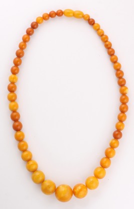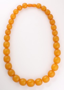 Kugeln, D = ca. 9,1 mm, endlos geknotet, L = 90 cm, Gebrauchsspuren, teils mit Oberflächenmerkmalen