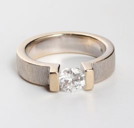 besetzt mit einem Brillant-Solitär von ca. 0,71 ct. im mittleren Farb- und geringen Reinheitsgrad, RW ca. 50, ca. 3,0 g, Natural an der Rundiste, Gebrauchsspuren