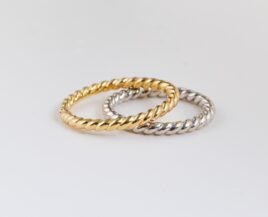 gedrehte Form, RW 51, dazu Beisteckring, 750 WG, gedrehte Form, RW 48, zus. ca. 2,6 g, Gebrauchsspuren (41709-118)