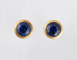 besetzt mit je einem rund-facettierten Saphir von zus. ca. 0,50 ct., ca. 1,6 g, Gebrauchsspuren (41745-6)